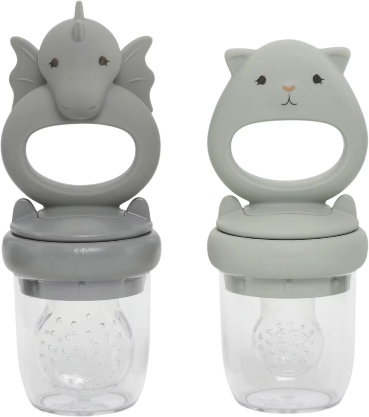 “Our fruit feeder pacifier allows small children to learn to feed by themselves and minimizes the risks of choking as the baby learns how to swallow solid foods, especially fruits. The ergonomic handles are easy for little hands to grasp. The feeder features small holes that only allows tiny food particles pass through for the baby to self-feed. Comes with a protective cap that keeps the silicone tip clean and hygienic. Recommended for children above six months Cleaning instructions- Dishwasher safe. You can fully dismantle the feeder for cleaning. Quality- Silicone/ PP/ Tritan CE, EN14372”