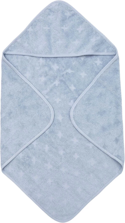 Babyhåndklæde med hætte og krydsmønster. Dejlig blødt og perfekt til de små da man kan pakke dem godt ind fra top til tå. 100 x 100 cm. (). Produktet er GOTS organic- certificeret, hvilket betyder at bomulden er certificeret økologisk, og at der i alle andre processer som farvning, strikning og syning er taget de strengeste hensyn til miljøet. GOTS er internationalt anerkendt som den førende standard for forarbejdning af tekstiler af økologisk bomuld. Derudover tages der også hensyn til arbejdsforholdene, hos dem der producerer tøjet. Økologisk bomuld 100%