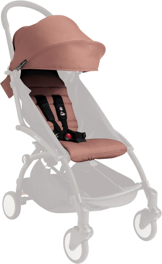 YOYO+ er den perfekte klapvogn til familien, som rejser meget eller bor i byen. Den er lille, kompakt og nem at folde sammen og have med sig. Den er endda godkendt til at have med som håndbagage på flyet (Airfrance, Cathay Pacific, Dragon Air). Barnet kan bruge klapvognen fra det er ca. 6 mdr. (og kan sidde selv) til det er ca. 3 år (max. 23 kg). Bemærk at kun betrækket medfølger – stellet købes separat. YOYO+ stellet kan kombineres med YOYO+ liggedel og siddedel, som købes seperat. Således kan YOYO+ bruges lige fra fødslen til omrking 3 års alderen. Den kan også kombineres med en autostol. • Vognens ryglæn kan justeres efter behov • Solkaleche • Praktisk lomme på bagsiden af kalechen • Indkøbsnet med max vægt: 5 kg • Aftageligt, vaskbart betræk • Vandskyende materiale • Vognen vejer 6,2 kg • Vognen måler 52 x 44 x 18 cm i foldet tilstand • 4 hjuls affjedring sikrer en blid kørsel • Kompatible autostole: BeSafe iZi Go & iZi Go Modular, Bébé Confort Pebble & Pebble Plus, Cybex Aton Q og Maxi-Cosi CabrioFix, Pebble & Pebble Plus