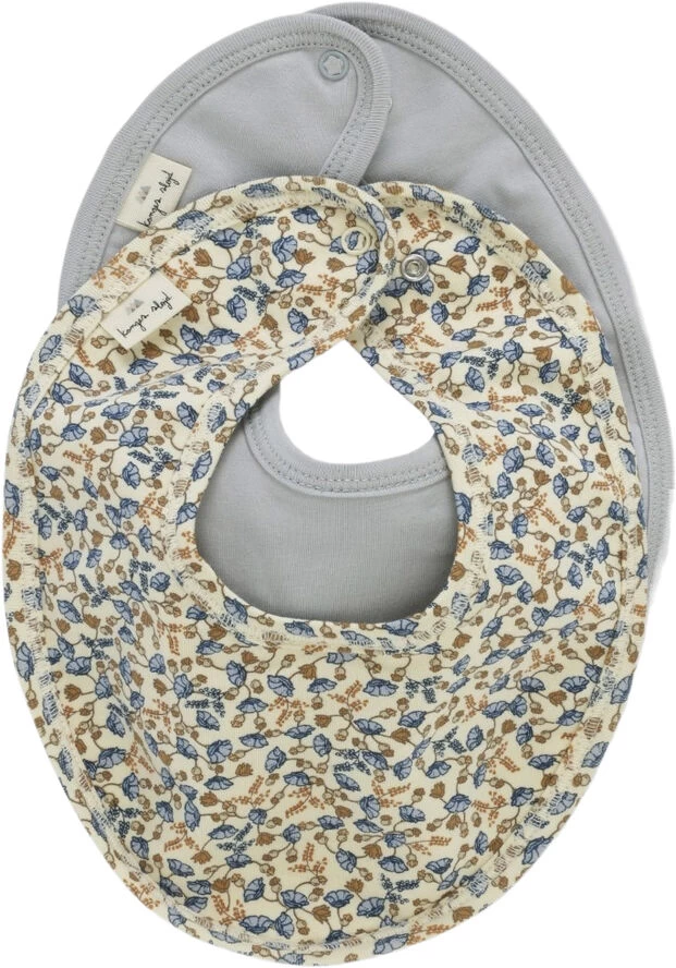 Soft bib made in 95 percent organic cotton and 5 percent elastane, with a hint of stretch. Features snap button closure with three adjustment levels.