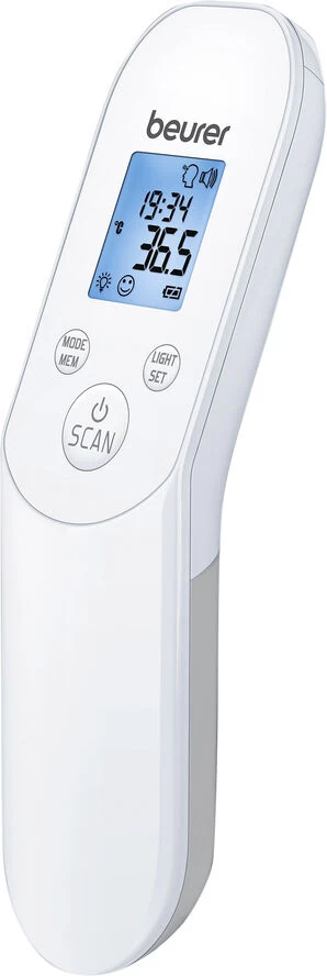 Kontaktfri termometer, der både kan måle kropstemperatur, objekttemperatur og rumtemperatur. Termometret er egnet til hele familien! På få sekunder måles temperaturen, helt uden berøring. Alt man behøver er ca. 2 cm mellem termometer og panden. FT 85 har feberalarm ved temperaturer over 38°C. En glad smiley indikerer, at der ikke er feber. Dette vises ved temperaturer under 38°C. En trist smiley indikerer, at der er feber. Dette vises hvis temperaturen er på eller over 38°C. Foruden en trist smiley, signalerer et lydsignal også feber. På det store display kan man let aflæse værdierne og termometret har hukommelse for de sidste 60 kropstemperaturmålinger med tid og dato. FT 85 er let at rengøre, og indikerer når det er tid til batteriskift. Termometret slukker automatisk efter ca. 60 sekunder. Etui medfølger.