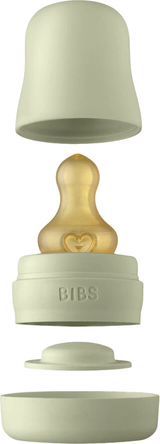 BIBS Baby Glass Bottle er 100% fri for kemiske stoffer og udskiller derfor ingen skadelige stoffer. Niplen matcher niplen på vores populære BIBS Colour sut – for at undgå forvirring, hvis du både ammer og supplerer med flaske. Niplen er desuden designet med en hjerteformet anti-kolik-ventil. Niplen er fremstillet af naturgummi (latex). Ud over niplen og flasken er alle andre dele fremstillet i 100% fødevare-godkendt materiale – med den største respekt for sikkerhed og genanvendelighed. Specielt udviklet til at opfylde europæisk standard EN14350.
