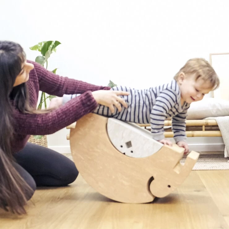 Fra baby til stort barn er bObles store Elefant den perfekte vippe. Læg Kylling i maven og vupti, så har du den sjoveste vippe til baby. En dejlig aktivitet på barsel til at styrke nakke og ryg, stimulere vestibulærsansen og have god kontakt og nærvær.