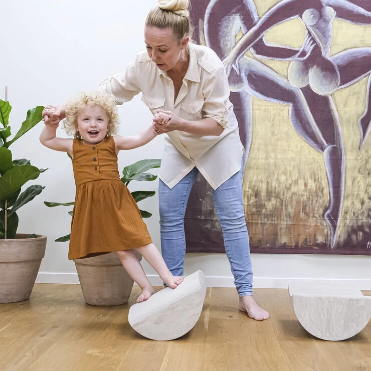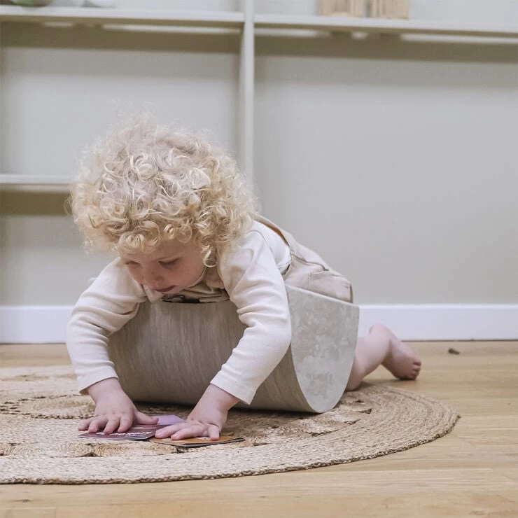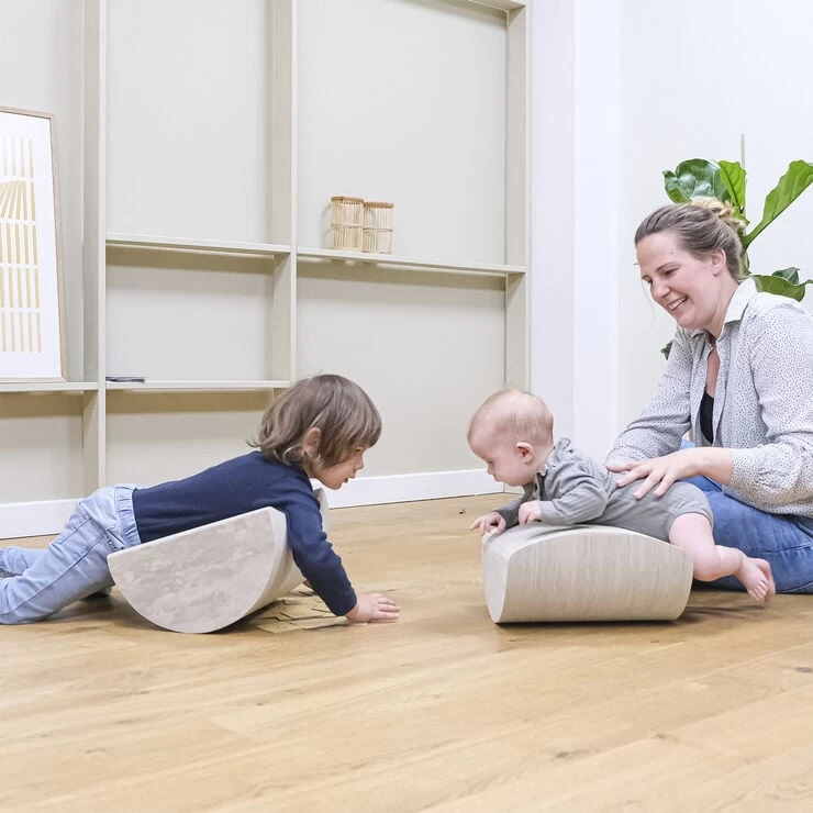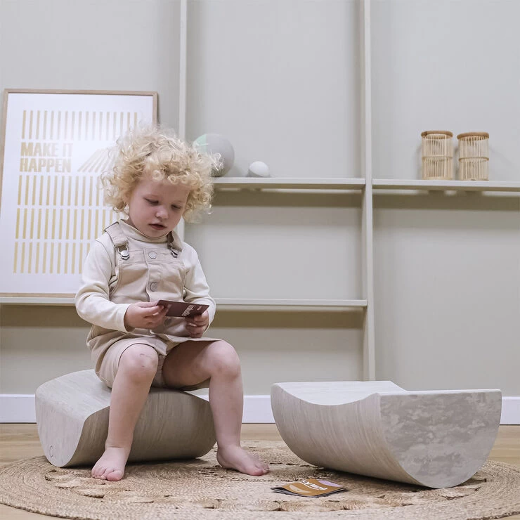 Venner for evigt. Hver for sig og sammen skaber Friends uendelige timer af sjov, motorisk udvikling og leg for alle uanset alder. bObles Friends er to tumlemøbler i ét. De passer sammen som en cylinder, der danner et lille bord eller taburet i stuen – også til mor og far! Friends byder på fire forskellige mulige vip, som giver udfordringer og stimulering af vestibulærsansen fra baby til barn. Den lille baby vil elske at ligge inde i konklaven og vippe blidt frem og tilbage, mens den styrker nakke og ryg. Friends er også et lille bord og en vippende stol, som pynter i alle hjemmets rum. Og når børnene er gået i seng, og der skal trænes hjemme på stuegulvet, er Friends den sjoveste træningsmakker. bObles tumlemøbler i Marble Nature farver er en smuk og multifunktionel tilføjelse til dit hjem. Med inspiration fra naturens elementer, smelter de varme marmorfarver ind i indretningen og giver et både legende og afdæmpet udtryk til glæde for både børn og forældre. Ligesom bObles andre tumlemøbler, er Marble Nature-serien lavet i fast EVA-skum med en blød overlade, som inviterer til leg, fantasi og motorisk udfoldelse for baby, tumling og barn. Samtidig fungerer de fantastisk som interiør til hele hjemmet.