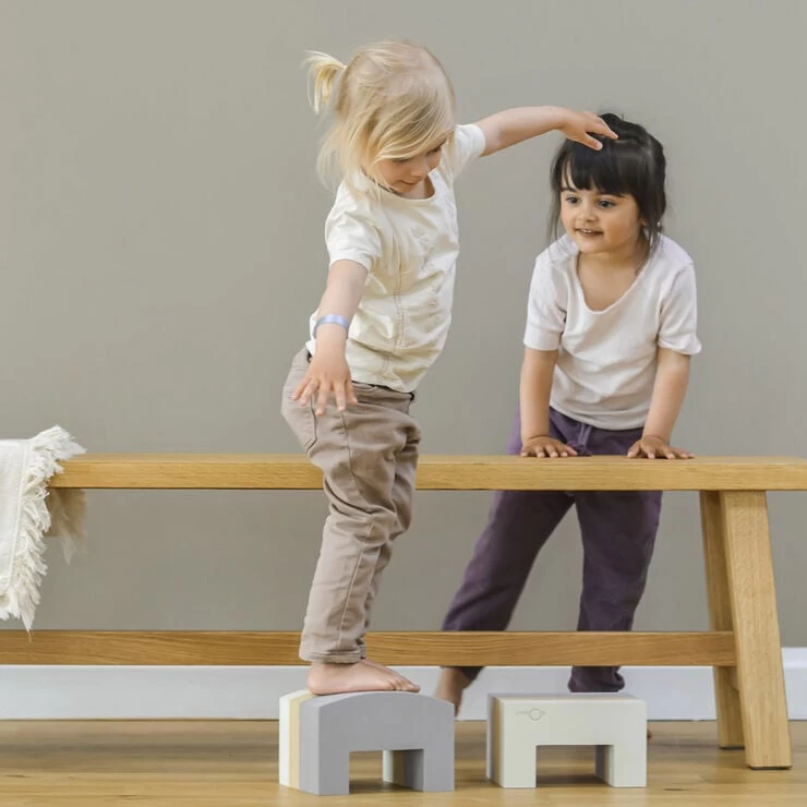 Town House Living er i to dele. Samlet kan det bruges som skammel, og vendes det på hovedet, bliver det en skammel, der kan vippe. Barnet kan bruge det for sig eller inddrage resten af børneværelset og de andre Town-huse i en leg på tumlegulvet med vejbaner. Byg din egen by – måske kan du genkende mormors hus eller din bedste vens? Town er perfekt til både aleneleg og sammen med andre. Det stimulerer både fantasi og motorik, samtidig med at det giver anledning til samtale mellem barn og voksen om barnets plads i verden, det nære miljø, trafikregler m.v. Town forener alt det bedste fra vores klassiske designs med en ekstra dimension. Town-kollektionen er skabt til familiens lille arkitekt som en hyldest i børnehøjde til Norden og de nordiske byer København, Stockholm, Oslo, Helsinki og Tórshavn. Her kan tumles, vippes og siddes på byens tage og leges kreativt med de forskellige Town-dele, så barnet kan bygge sin egen lille by.