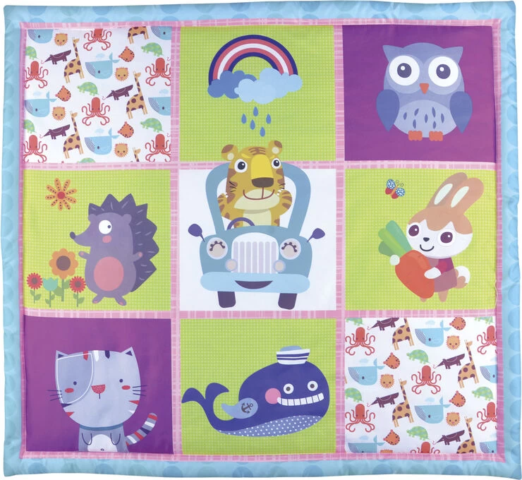 Legetæppe med trapezstativ Med spejl og rangler hvor blomsten spiller forskellige melodier, når man trækker i den Inkl 2 stk knapcellebatterier