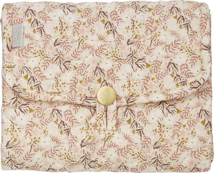 Praktisk pusleunderlag med et fint, quiltet bølge-mønster – perfekt til skiftesituationer ude af huset, hvor du har brug for et blødt og rent underlag til den lille. Det kan nemt foldes sammen med én hånd til en praktisk størrelse, der passer i pusletasken. Pusleunderlaget er vatteret med et blødt skumlag, og er coated på ydersiden, så det er smuds- og vandafvisende. Indeni har pusleunderlaget en smart og praktisk lomme der kan rumme en ble og en stofble.Pusleunderlaget kommer i mange farver, samt et udvalg af fine Cam Cam prints.