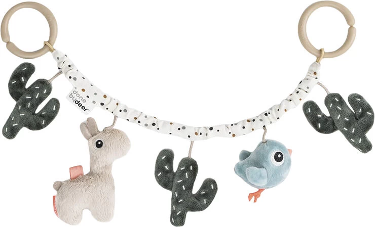 Deer friends’ Lalee og Birdee er klar til sjov på farten. Den elastiske barnevognskæde er fleksibel og kan nemt fastgøres med toy links til en barnevogn, klapvogn eller til hætten på en autostol.