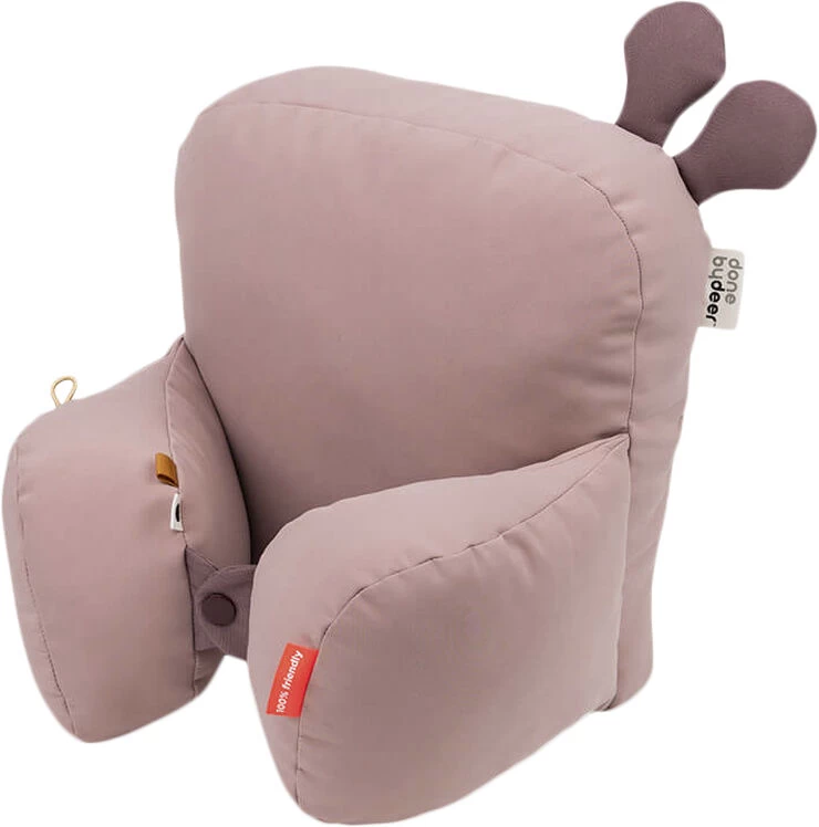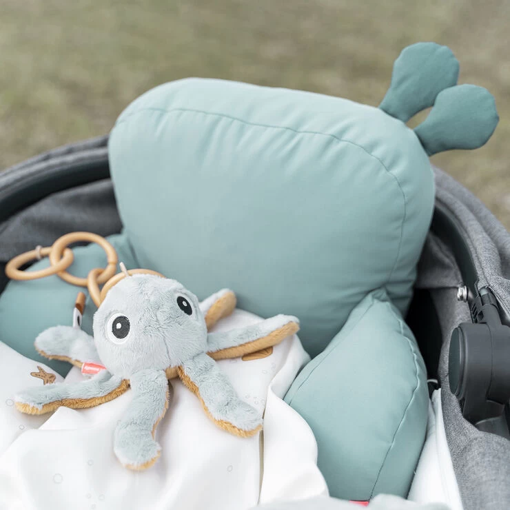 Når din baby er klar til at udforske verden fra barnevognen, kan Raffi barnevognspuden støtte, og gør det behageligt at sidde selv. Raffis sjove girafhorn, praktiske elastik-løkke til fastgørelse af sutter eller legetøj og farverige mærker underholder dit barn, når I er på farten. De små vil nyde at tage på tur med den søde pudderfarvede giraf barnevognpude.
