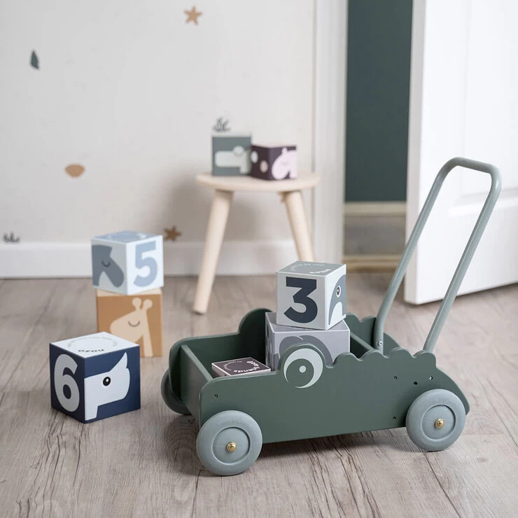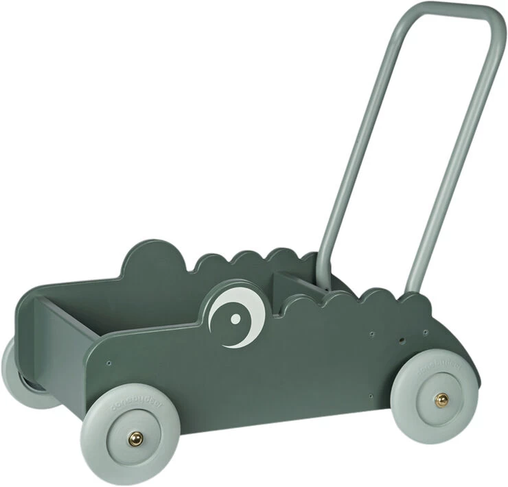 Croco – the warmhearted crocodile is the perfect walker for supporting your tiny one’s first steps. A helping friend when learning to walk and perfect for taking your favourite toys for a drive. Croco rides smoothly over the floors on soft rubber wheels. Brakes on the rear wheels ensure extra safe driving while the front wheels also function as protecting bumpers. The handle can be adjusted in two positions.