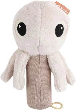 Jelly sanseranglen med spejl er fyldt med stimulerende features, der er sjove at udforske for de nysgerrige små. Lad din baby smile tilbage til sit eget spejlbillede i dette fantastiske babylegetøj. Jelly-ranglen har bløde, sansestimulerende ben der knitrer når de udforskes af små nysgerrige hænder. Håndtaget er nemt for de mindste børn at gribe om, og når det får et klem, laver det en sjov piv-lyd. Ryst den lille vandmand og ly til den søde rangle. Den bløde Jelly rangle er i skønne, dæmpede toner af pudder.