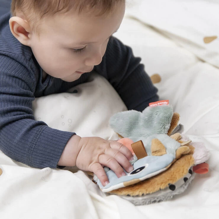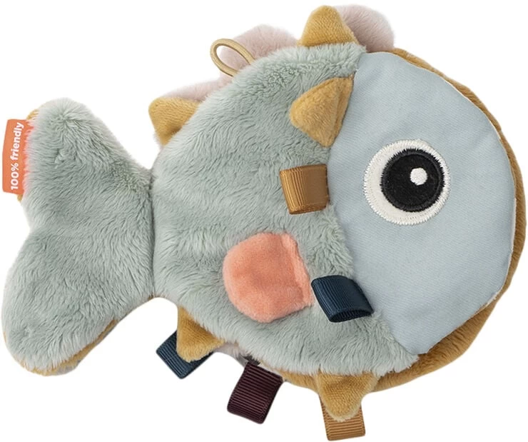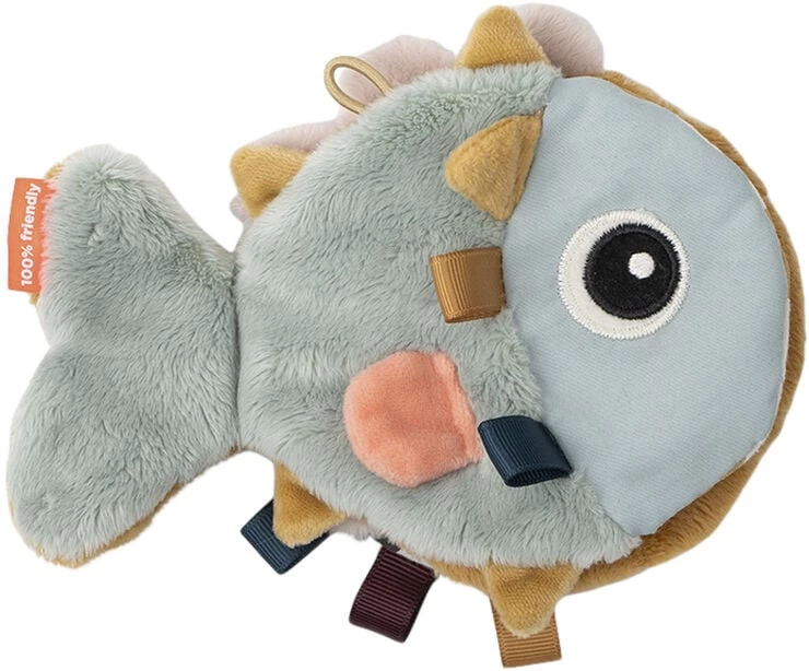 Dyk ned i en verden med ??sensoriske detaljer med den søde fisk i denne bløde babybog. Din baby kan udforske og nyde de knitrende sider og gå op opdagelse i kontrastfyldt grafik, mens finmotorikken øves når siderne vendes. Grib fat i de bløde pigge og farverige mærker. Vend siderne i bogen og hør en sød knitrende lyd, og lad de nysgerrige øjne blive betaget af prikker og striber i kontrastrige farver, som alle stimulerer din babys nysgerrighed og sanser. Elastik-løkken gør det let at fastgøre bogen til en legemåtte, klapvogn, bilsæde eller et aktivitetscenter ved hjælp af en legetøjsring. Denne aktivitetsbog er en god gaveide til en lille baby. Den er i en sød farveblanding med blå, mustard og pudderfarv