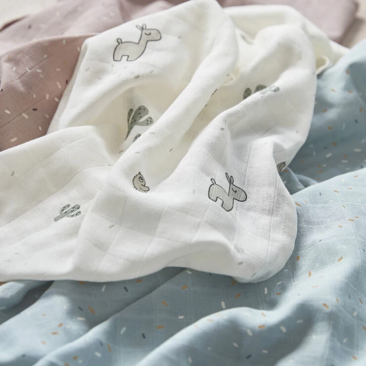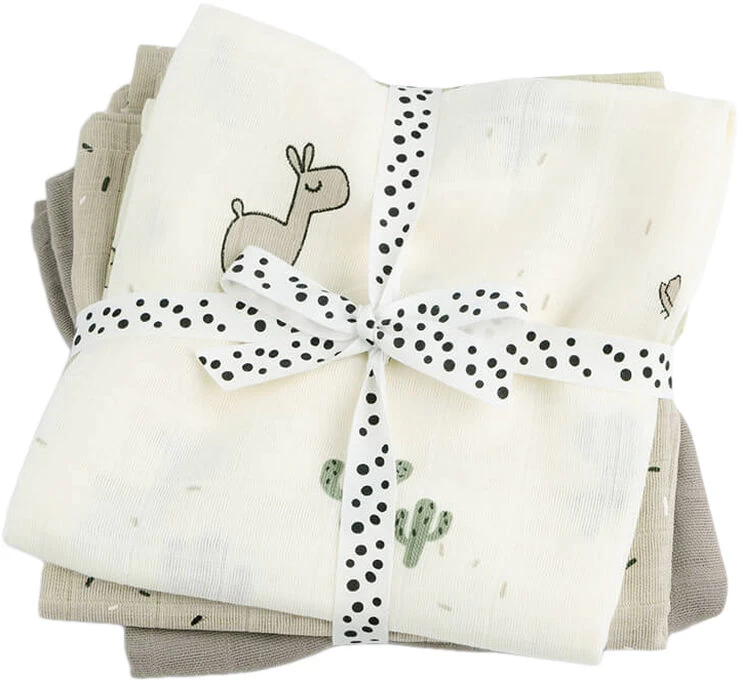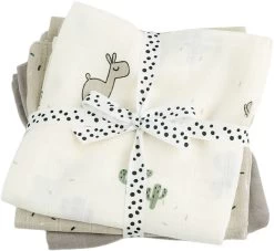 Et sæt af tre stofbleer med Lalee print i lyse toner. De økologiske, GOTS-certificerede stofbleer er behagelige, åndbare og praktiske. De mange anvendelsesmuligheder gør stofbleer til et ægte baby must-have for alle småbørnsforældre. De søde muslin stofbleer bliver endnu blødere og får et lækkert vafflet look efter vask. De er gode at have ved hånden til spisetid, når baby skal bøvses efter mælk eller som et blødt underlag ved bleskift. Den sjove og praktiske 3-pak med stofbleer i sandfarvede nuancer består af én ensfarvet, én dekoreret med lamaen Lalee, Birdee og kaktusser og én med festligt Confetti print. En perfekt gaveidé til en lille ny.