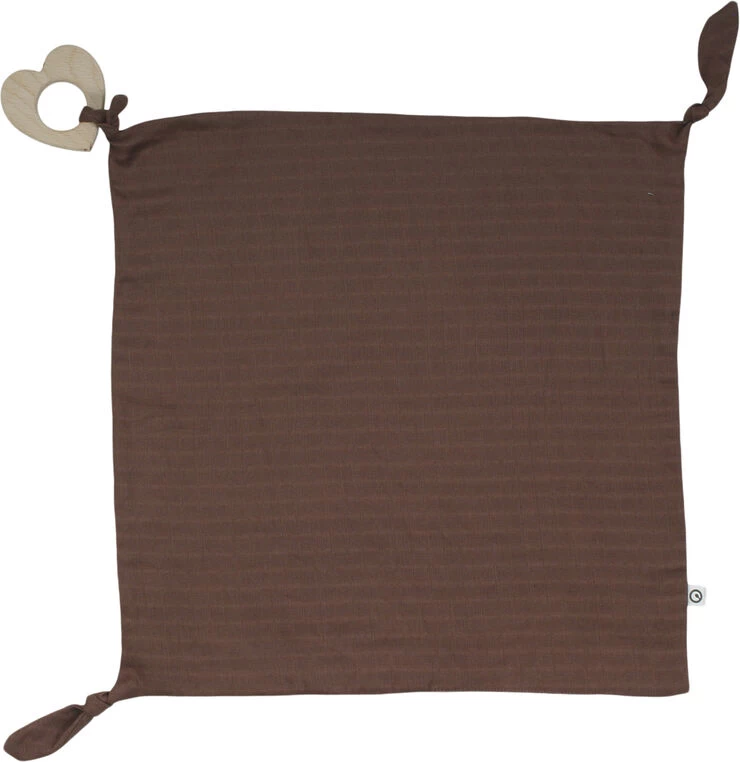 Sød og blød sutteklud i det lækre, bløde materiale, du kender fra stofbleer. Nussekluden har knude-arme og en bidering i træ, som kan bindes af og på efter behov. Armene på nussekluden kan bindes op så der kan bindes en sut fast i nussekluden. Træfigur fjernes ved vask. Produktet er GOTS organic- certificeret, hvilket betyder, at bomulden er certificeret økologisk, og at der i alle andre processer som farvning, strikning og syning er taget de strengeste hensyn til miljøet. GOTS er internationalt anerkendt som den førende standard for forarbejdning af tekstiler af økologisk bomuld. Derudover tages der også hensyn til arbejdsforholdene, hos dem der producerer tøjet. (GOTS Organic Certified by Ecocert Greenlife Lic. No. 152033).