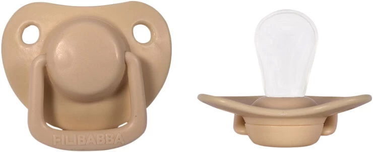 Filibabba Moments sut med symmetrisk suttehoved lavet af silikone. Sutterne findes i 15 smukke farver og i to forskellige størrelser, 0-6 mdr. og +6 mdr.