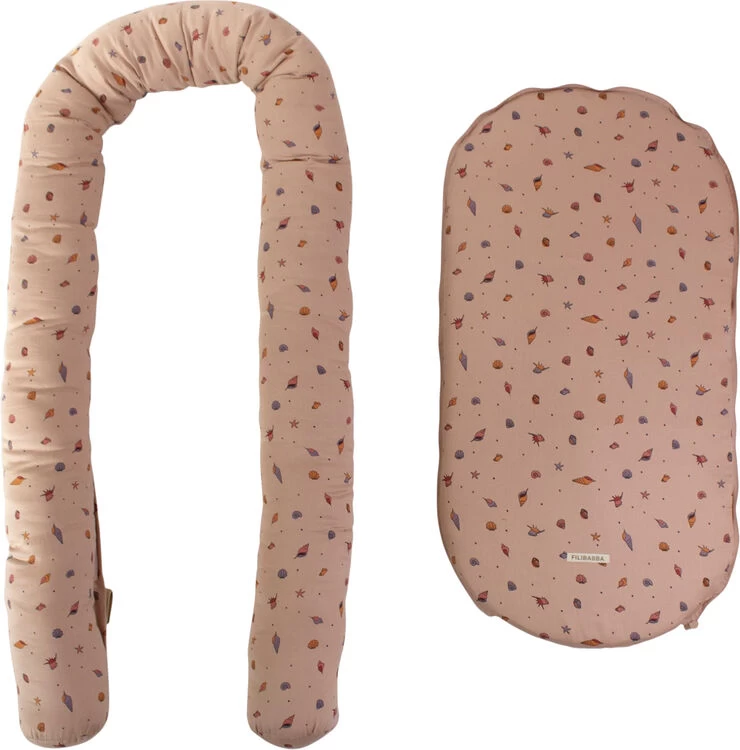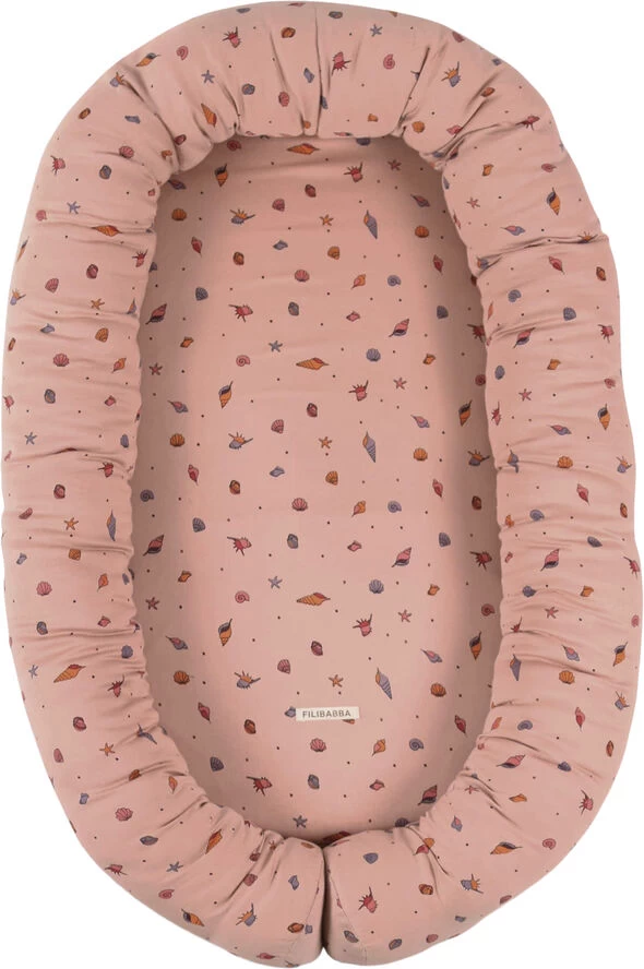 Collection of memories skaber med sine håndtegnede elementer en følelse af ro og frihed. Følelsen af at udforske havets bund eller strandens vandkant, samle skaller og skabe minder vi glædeligt husker tilbage på. Med skaller i forskellige størrelser får printet masser af liv og et drømmende udseende, mens mikset af de rolige og friske farver skaber en glæde indeni os. Collection of memories kommer i fuld serie, med mulighed for at skabe et komplet drømmende univers. Babynesten er produceret i økologisk satinvævet bomuld, som er ultrablødt og smukt at se på. Vores babynest er designet med lynlåsfunktion, som giver mulighed for at lyne kanten af og bruge denne som sengerand, når baby vokser ud af babynesten – men stadig har brug for at føle sig omsluttet. Kan tilmed åbnes og lukkes i enden med et læderbælte, hvilket forlænger babynestens levetid, og er designet uden snore for at sikre barnet på bedste vis. Vigtigt: Sørg altid for, at babynesten ligger på en plan overflade, og at barnet er under opsyn, og vend altid barnet med hovedet modsat lukningen.