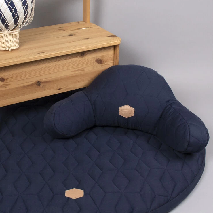 Skøn legemadras i quiltet stof, som inspirerer til sjov og leg. Passer perfekt til børneværelset eller i stuen, hvor den lille kan sidde og hygge sig. Derudover er det quiltede legetæppe ideelt under en sengehimmel, der skaber den hyggeligste hulestemning på børneværelset. Madrassen er lavet med en lynlås i siden, der gør det muligt at tage betrækket af og vaske det ved behov. Vi anbefaler dog at man minimere vask ved dette produkt, grundet syningerne i quilt mønsteret – tør i stedet med en fugtig klud.