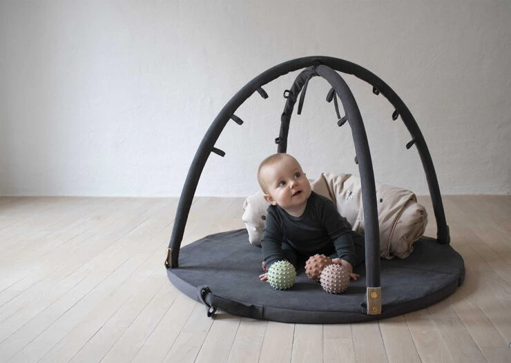 En opdateret version af vores populære legemadras. Nu som en multimadras med aktivitetsstænger og muligheden for at tilkøbe et UV-betræk med UV50+ til brug udenfor, for at beskytte barnet mod sol og vind. Madrassen er designet til let at kunne foldes og bæres på en tur og med resistent stof på undersiden, så den kan bruges derhjemme, i haven og på stranden. Aktivitetsstængerne kan skilles fra madrassen og foldes til et minimum, når du er på farten, eller når multimadrassen skal opbevares. Loui multimadrassen er produceret i det dejligste bløde fløjsstof, som giver et eksklusivt look og med resistent canvas på undersiden. Designet med vores velkendte læderdetaljer samt en lomme til legetøj, når den foldes sammen. Med en lynlåsfunktion er det nemt at tage betrækket af, så det kan vaskes efter behov. Husk at strække betrækket, når det kommer ud af vaskemaskinen og put det på madrassen og lad betrækket tørre direkte på madrassen. Dette er for at mindske, at betrækket krymper.