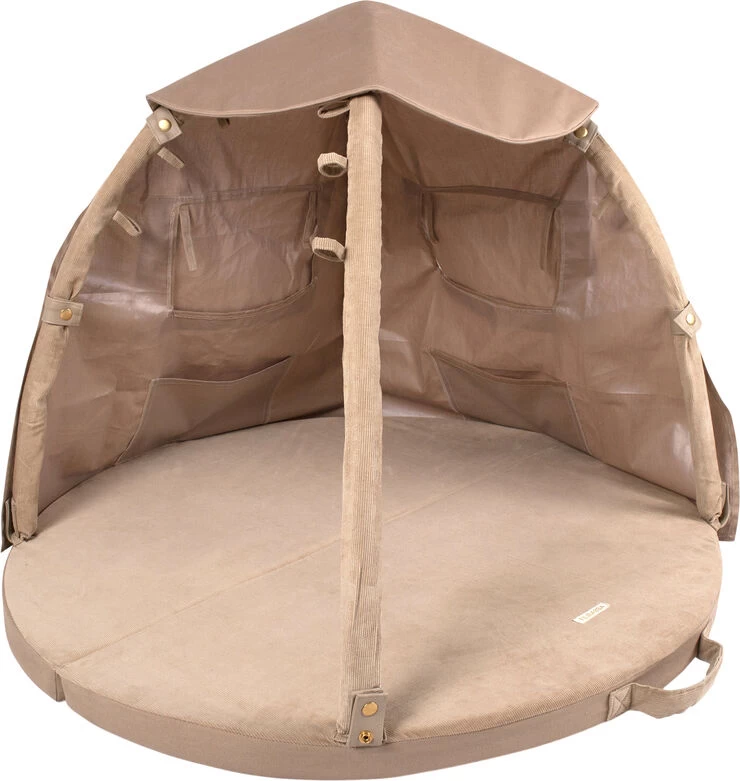 Med vores UV-cover kan du beskytte dit barn mod sol og vind og nemt transformere vores multimadras til et solbeskyttende UV-telt. Sensitive børn kan også have brug for at blive skærmet af for omgivelserne indendørs, og dette kan let gøres med vores UV-cover. UV-coveret monteres nemt ved hjælp af trykknapper på både aktivitetsstænger og multimadrassen. UV-coveret beskytter med UPF 50+ (svarende til faktor 50) og skaber samtidig skygge for den lille baby. UV-coveret er vindtæt og vandafvisende og produceret i 100% bomuldssatin med PU-laminering samt designet til at passe i yderlommen på vores Loui multimadras.
