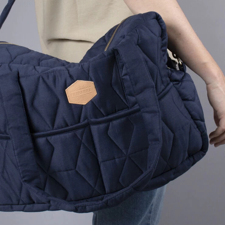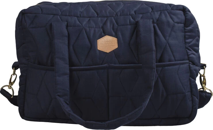 Filibabba har produceret en flot og praktisk mommybag som en del af Deres quilt-kollektion. Tasken har en god størrelse og kan både bruges som større pusletaske eller som weekendtaske til mor eller far. Udvendigt har tasken en lomme med lynlås på den ene side og to åbne lommer på den anden side. Invendigt har den fire gode store lommer med elastik i toppen så tingene der lægges i lommerne holdes på plads. Der medfølger en lang rem så tasken kan bæres over skulderen eller hænges på barnevognen.