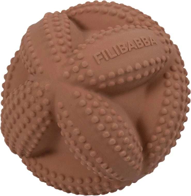 Isa grab ball er designet med henblik på motorisk udvikling. Med hjertet i alle vores produkter har vi skabt en bold kollektion, med taktile overflader, gode egenskaber og i fine farve nuancer. Isa grab ball er produceret i 100% naturgummi og er med til at stimulerer barnets motorik og gribereflekser. Med en fin mild klokke lyd indeni, stimulere den også barnets høre sanser. På overfladen er der produceret små dupper som giver et godt greb for selv helt små hænder, samtidige er alle kanter er bløde, som kan hjælpe på ømme gummer og er samtidige stimulerende for den taktile sans. Fantastisk produkt til at udvikle barnets finmotorik. Da bolden er håndlavet, kan udtrykket variere en smule fra billedet