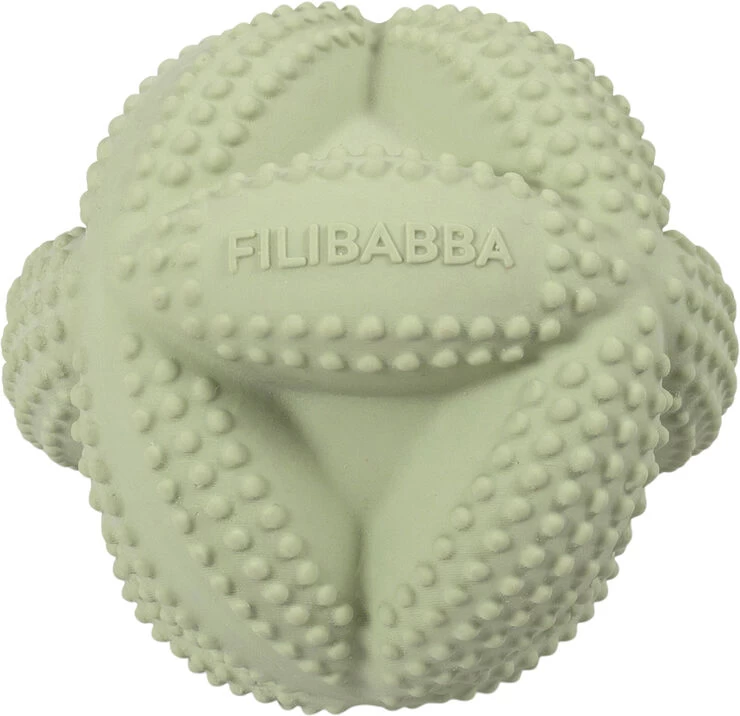Isa grab ball er designet med henblik på motorisk udvikling. Med hjertet i alle vores produkter har vi skabt en bold kollektion, med taktile overflader, gode egenskaber og i fine farve nuancer. Isa grab ball er produceret i 100% naturgummi og er med til at stimulerer barnets motorik og gribereflekser. Med en fin mild klokke lyd indeni, stimulere den også barnets høre sanser. På overfladen er der produceret små dupper som giver et godt greb for selv helt små hænder, samtidige er alle kanter er bløde, som kan hjælpe på ømme gummer og er samtidige stimulerende for den taktile sans. Fantastisk produkt til at udvikle barnets finmotorik. Da bolden er håndlavet, kan udtrykket variere en smule fra billedet