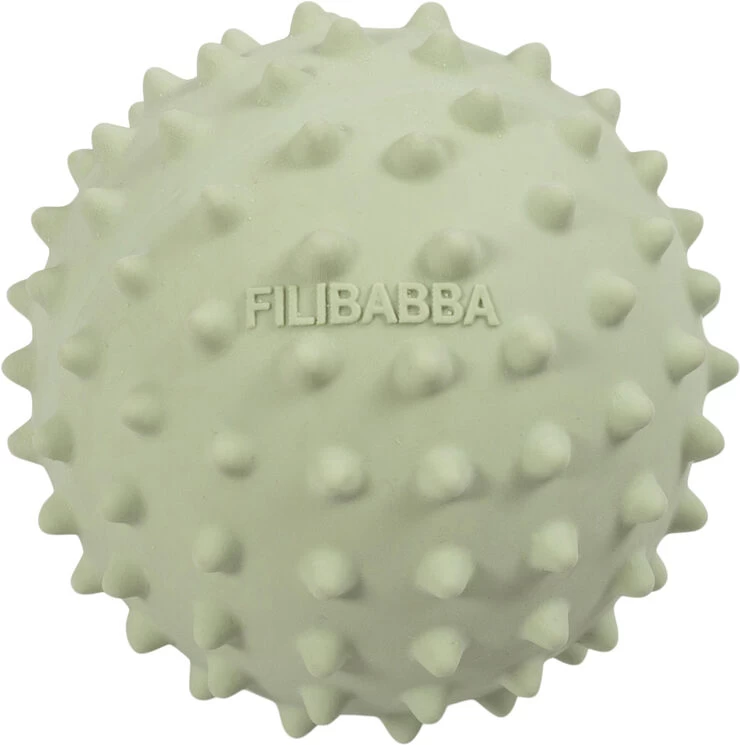 Nor stimulate ball er designet med henblik på motorisk udvikling. Med hjertet i alle vores produkter har vi skabt en bold kollektion, med taktile overflader, gode egenskaber og i fine farve nuancer. Nor stimulate balll er produceret i 100% naturgummi og er med til at stimulerer barnets motorik og gribereflekser. Med en fin mild klokke lyd indeni, stimulere den også barnets høre sanser. På overfladen er der produceret små pigge som er fremragende til mild massage af trætte, ømme eller spændte muskler, samtidige er alle kanter er bløde som kan hjælpe på ømme gummer og er samtidige stimulerende for den taktile sans. Fantastisk produkt til at udvikle barnets finmotorik. Da bolden er håndlavet, kan udtrykket variere en smule fra billedet.