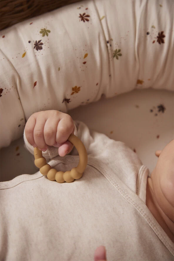 Når gummerne er ømme ved tandfrembrud, er en bidering det eneste, der hjælper. Vores bidering af silikone er designet med spændende strukturer og former, som stimulerer din babys mund og hænder. Strukturen på bideringen gør det desuden nemt for barnet selv at gribe om den.