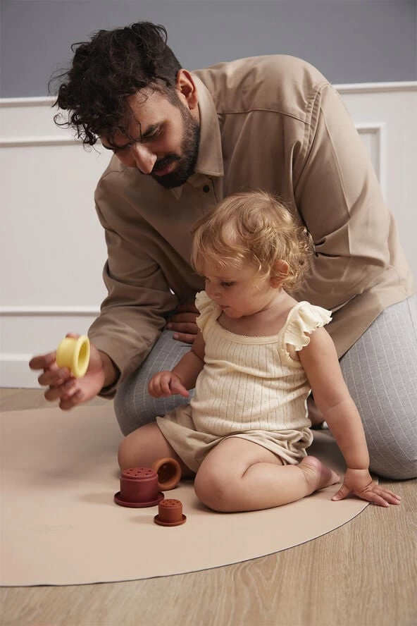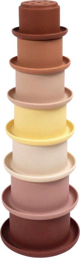 Stabl alle syv kopper for at skabe dit eget lille tårn og opdag, at det er lige så sjovt at vælte det, som det er at stable det! Vores stablelegetøj udvikler dit barns fin- og grovmotorik samt hånd-øje-koordination og med huller i bunden er stablekopperne også perfekte til leg i badet. De bløde og fleksible stablekopper er lavet af slidstærk og superblød silikone, som også tåler opvaskemaskine.
