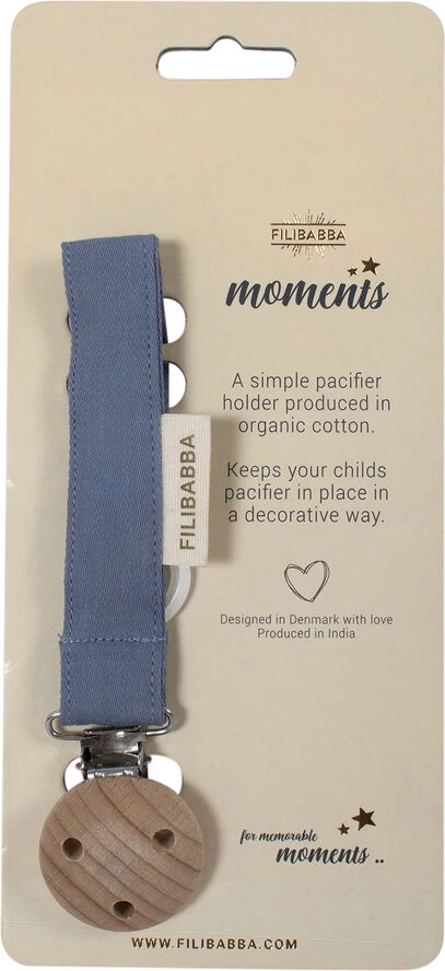 Fin og praktisk suttesnor produceret i 100% GOTS certificeret økologisk bomuld. Suttesnoren er produceret med en nikkel-fri metalclips på en træknap, som fastgøres på barnets tøj og dermed sørger for at sutten altid er i nærheden og ikke falder på jorden.I den anden endefastgøres sutten let i suttesnorens silikonering. Godkendt iht. EN 12586