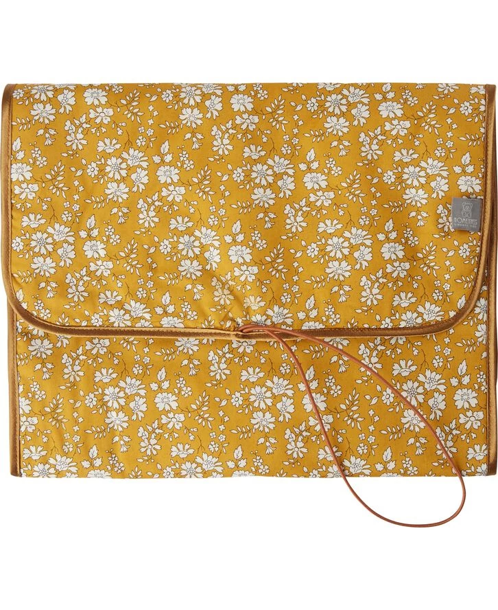 Pusle taske fra Homeyness med et smukt Liberty print. Tasken har et praktisk design, der kan foldes ud, så der er adgang til en flad lomme og en ekstralomme, som fx er perfekt til at indeholde en pakke vådservietter. Indersiden af tasken kan nemt tørres af, og den praktiske elastik omkring tasken gør, at der altid vil være styr på indholdet.