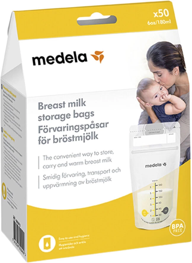 Den praktiske metode til at opbevare, transportere og opvarme udpumpet brystmælk: Medelas opbevaringsposer til brystmælk er nemme at bruge og hygiejniske