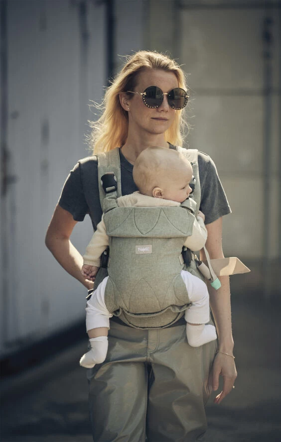 I denne opdaterede version har vi tilføjet muligheden for at bære på hoften med bæreselens hip seat. På denne måde kan du bære ubekymret og hurtigt løfte din baby op og ned.
