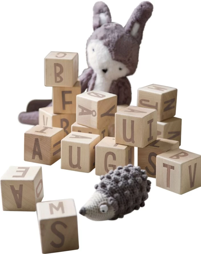 Lad barnet bruge træklodserne til at stable, bygge eller stave med – eller skriv barnets navn som dekoration i vindueskarmen, når klodserne ikke er i brug. Dette stilfulde sæt har 16 klodser dekoreret med det engelske alfabet + specialtegn såsom Æ, Ø, Å. De er nemme for barnet at holde om og et ideelt sæt til at lære dit barn alfabetet og/eller stavning.