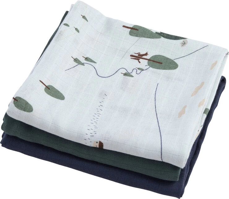 Lækker sampak bestående af tre ultrabløde stofbleer i økologisk musselin-bomuld med forskellige udtryk. De tre stofbleer hører til Sebras kollektion Dragon Tales – en fortælling om drager og riddere. Stofbleerne er GOTS-certificeret – din garanti for et økologisk kvalitetsprodukt. . Bleerne kommer i en sampak bestående af én helfarvet i en mørkegrøn farve, én helfarvet mørkeblå og én med illustrationer af drager og ridder i forskellige landskaber, som også findes på sengetøjet fra samme serie. Stofbleer kan man aldrig få nok af og derfor er denne sampak et must-have for forældre med babyer og småbørn. Brug stofbleerne i forbindelse med amning eller når du giver flaske og som bøvseklud eller skifteunderlag på farten. Kan også anvendes som putteklud, hagesmæk, svøb eller som et alternativ til en solhat, hvis du en dag kommer afsted uden. Stofbleerne er designet i Danmark. Match dem med øvrige produkter fra den store Dragon Tales kollektion. ADVARSEL! Må ikke anvendes i nærheden af åben ild. Vaskeanvisning: kan maskinvaskes ved 60 grader. Om temaet Dragon Tales Med små fortællinger inviteres barnet ind i et rigtigt drageunivers. Her møder barnet skovdrager, slotsdrager, flyvende drager, sultne drager og ildspyende drager. Sammen med hver deres loyale ridder udforsker dragerne de snedækkede bjergtoppe, langsomt rindende åer, dybe blå skovsøer og vulkaner i udbrud. De begiver sig ud på eventyr, og besøger landsbyer og slotte. Dragon Tales er små fortællinger om venskaber, om at kunne leve sammen trods store forskelligheder, og om lysten til at opleve og udforske nye områder. Kort om GOTS-certificeringen Garanterer et økologisk produkt, produceret ud fra en række høje miljømæssige standarder for hele produktionskæden lige fra høstningen af råmaterialerne til emballagen. GOTS sikrer, at produktet er produceret under gode arbejdsforhold. Sebra licensnummer: CU1014229.