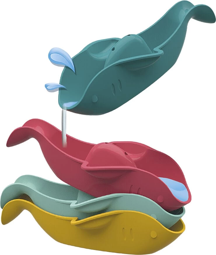 Disse fire fisk har flere funktioner, og du er garanteret mange timers badeleg. Du kan stable dem, sætte dem forskelligt sammen, men du kan også bruge dem som øser eller som si. Indeholder: 4 fiskebåde i flere farver. Emballage:20 x 20 x 6 cm. Produceret i Holland Alder: 6mdr+