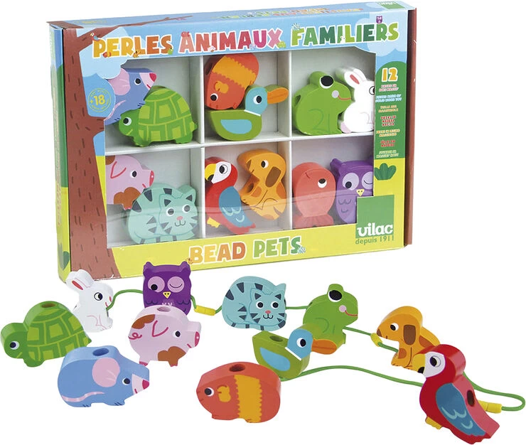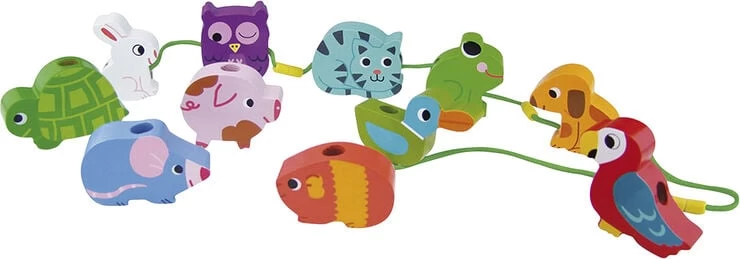 Sjove træperler udformet som alle de søde dyr fra skoven.Træner barnets hånd- og øjekoordination. 12 dele Emballage: 22 x 32 x 3,5 cm Alder: 18-36 mdr